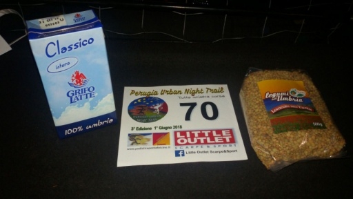 Il pacco gara conteneva prodotti dello sponsor Grifo Agroalimentare. Si può scegliere (salvo disponibilità ) il numero del pettorale ed io ho preso il mio anno di nascita.